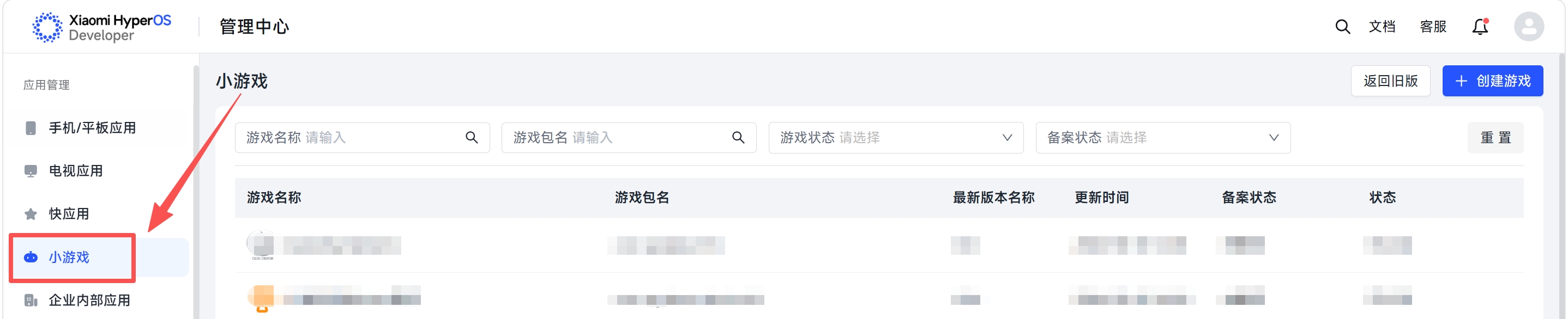 请登录“小米澎湃OS开发者平台”→“管理中心”→“小游戏”进入小游戏开发者站。