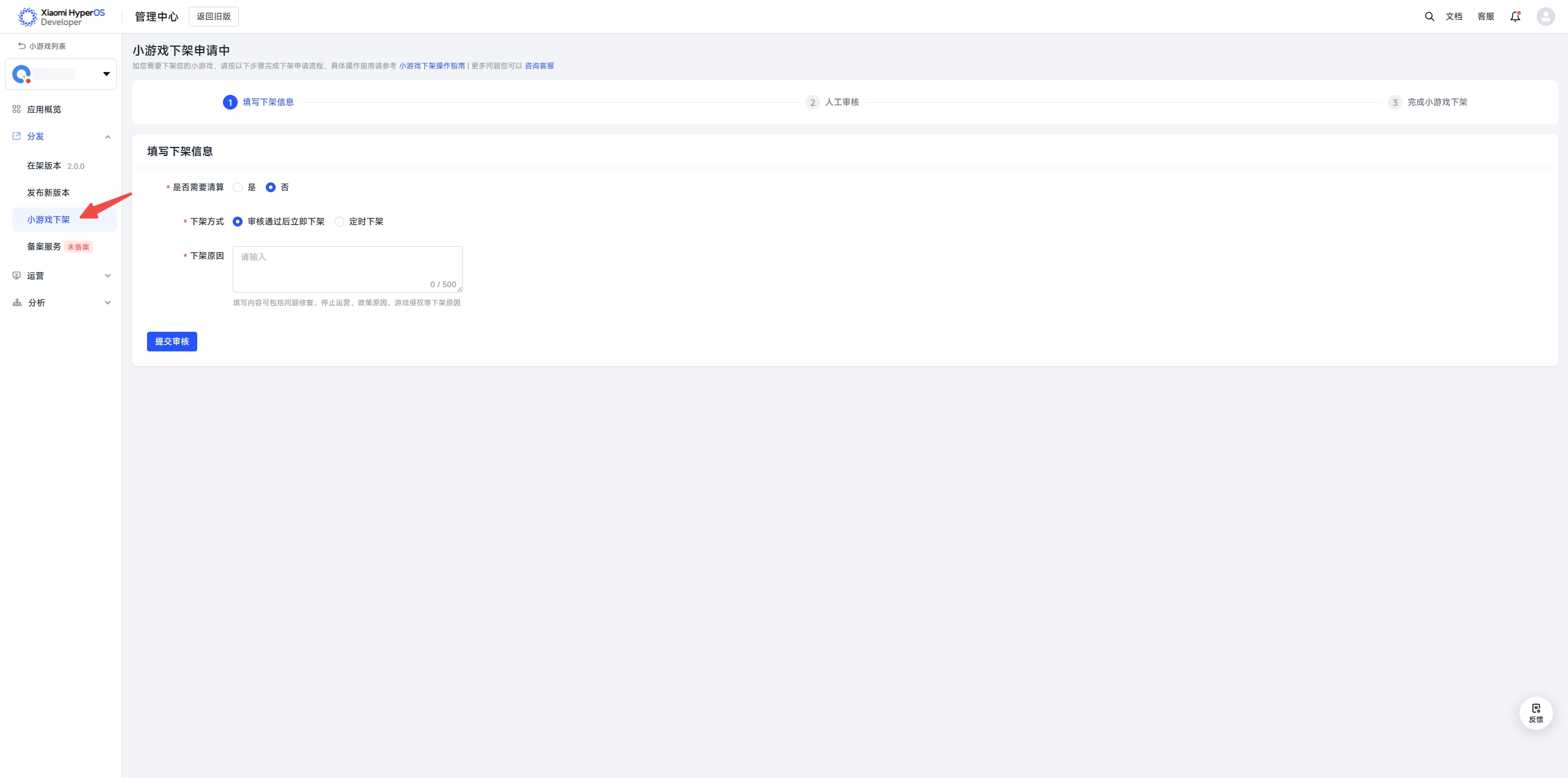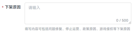4.需如实填写小游戏下架原因,包括但不限于问题修复,停止运营,政策和游戏侵权等下架原因。