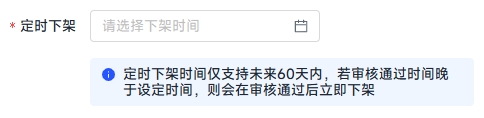 1.若您选择定时下架,可预约的最晚下架时间为申请提交当日起第 60 天。