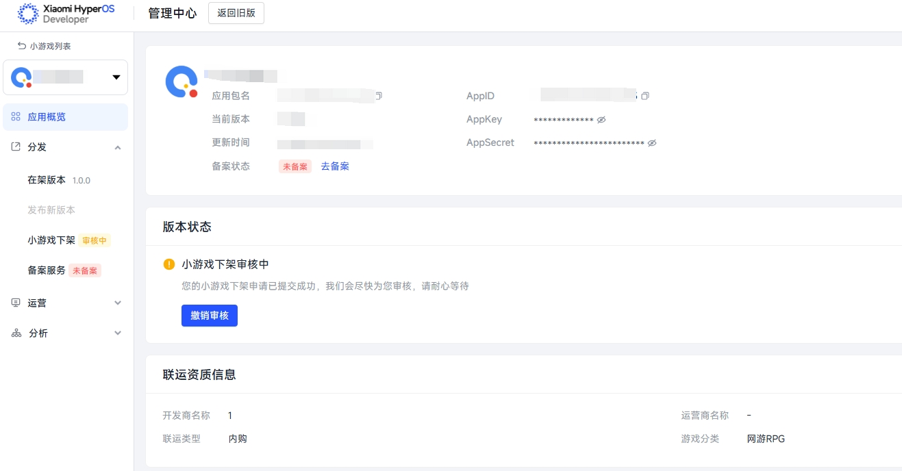 即日起,开发者可在小米小游戏开发者后台直接申请小游戏下架,无需通过邮件申请。具体流程指引如下: