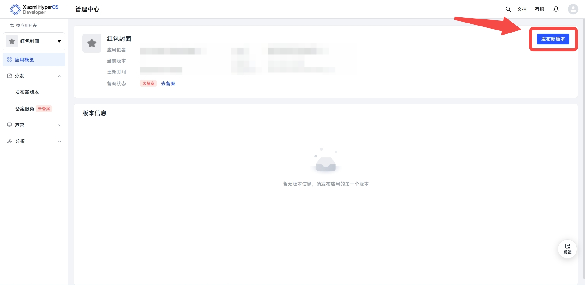 您可在快应用-应用列表中,找到对应的应用,点击进入应用概览页;在应用详情页中点击”发布新版本“按钮继续发布流程。