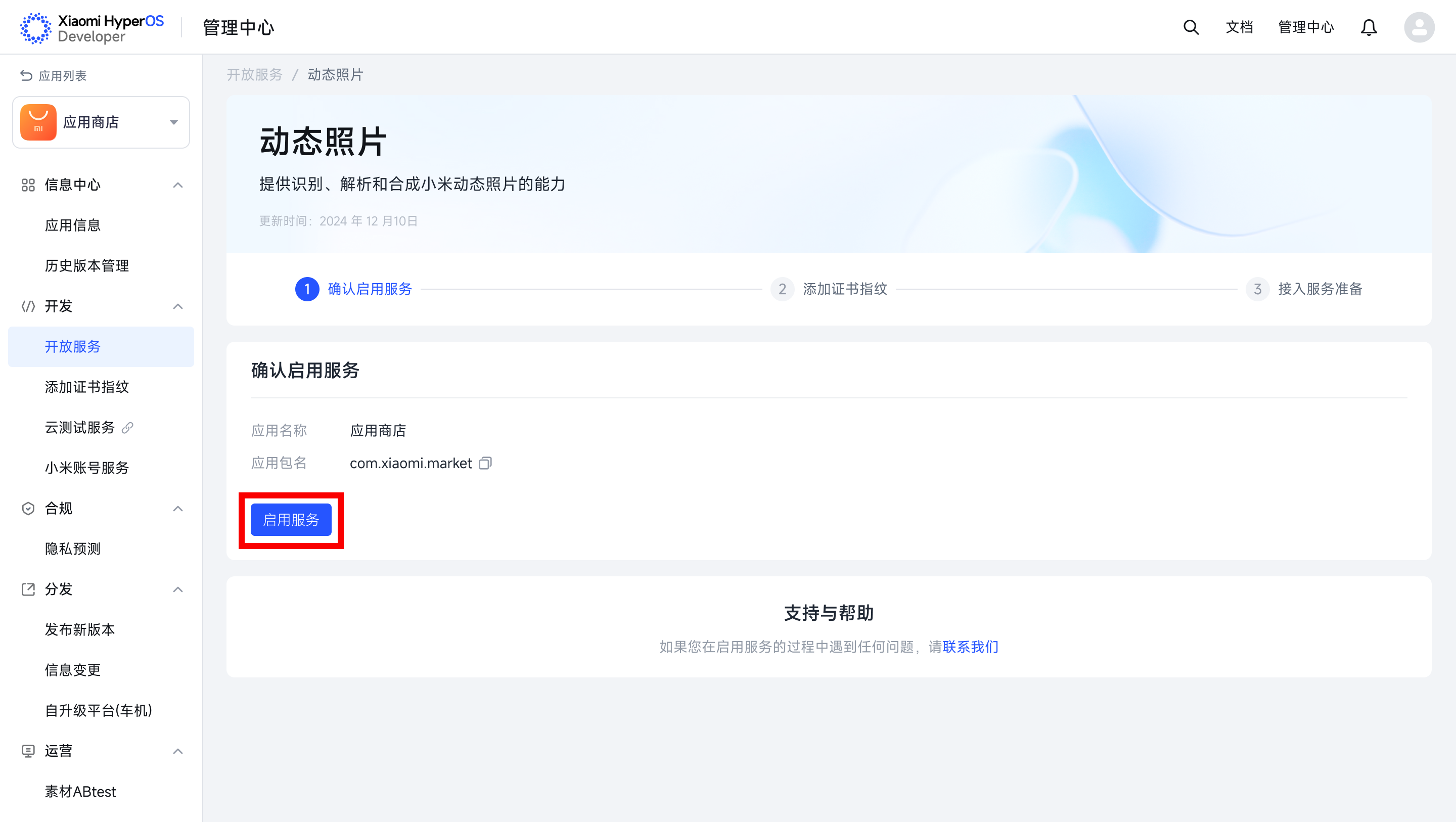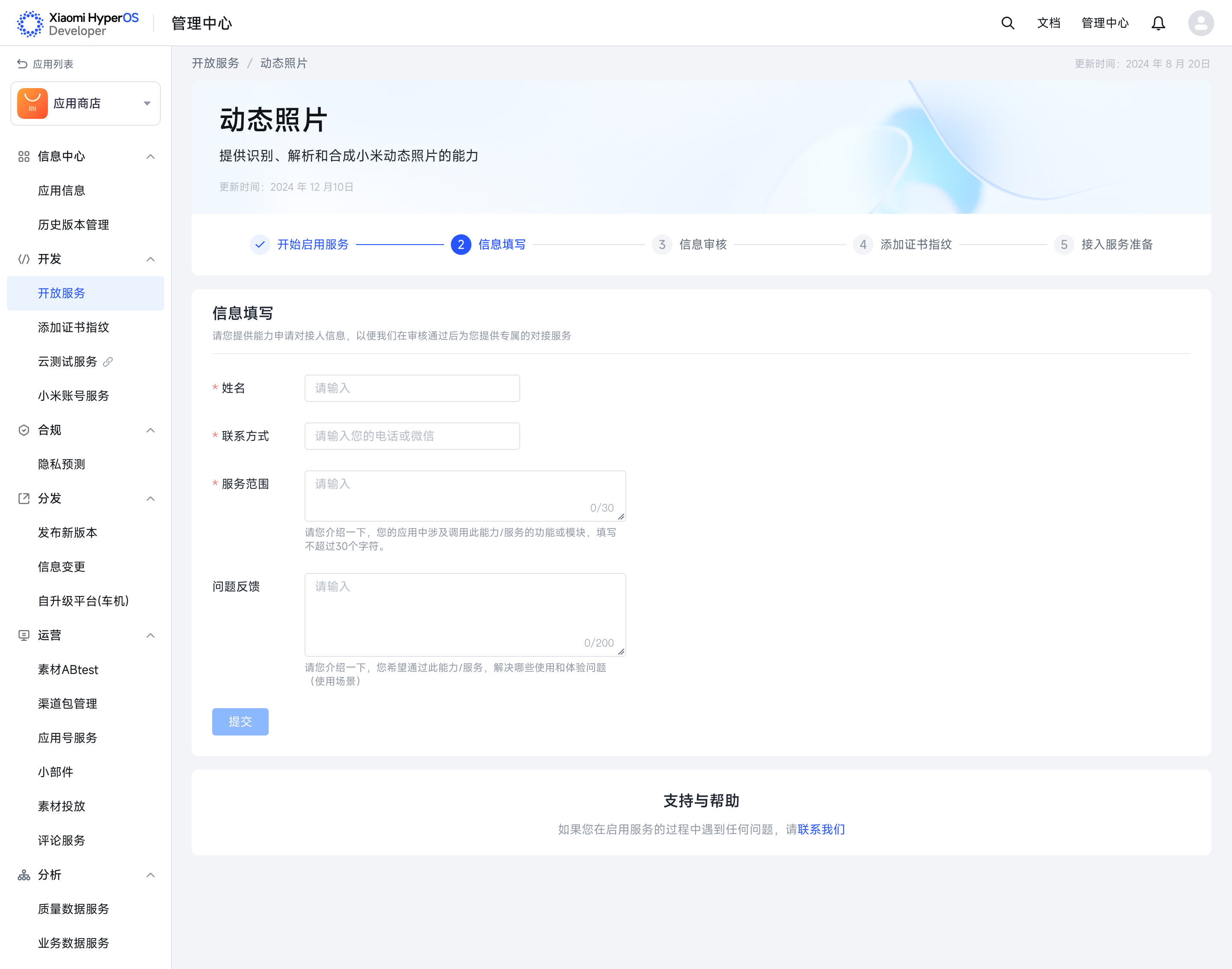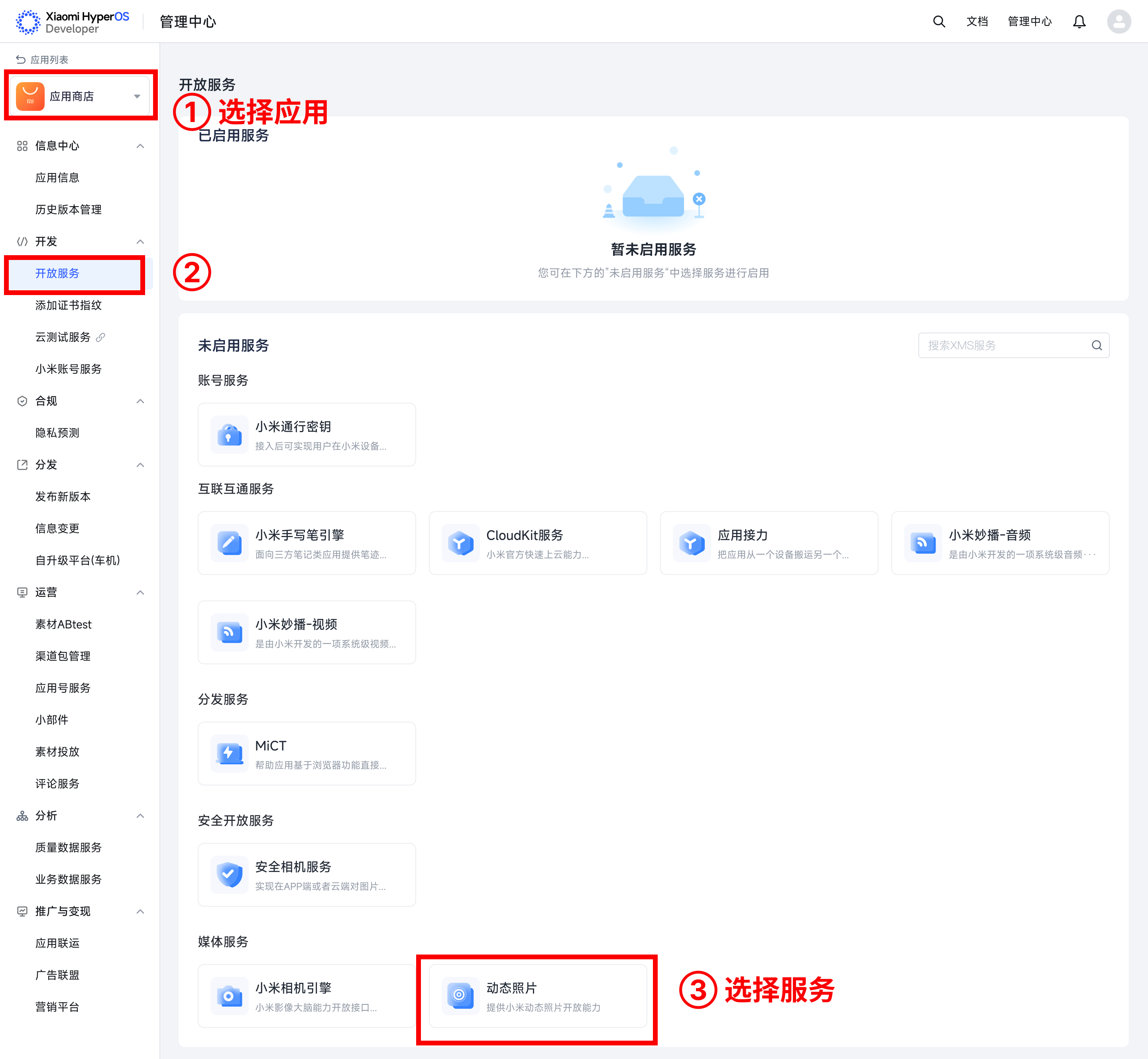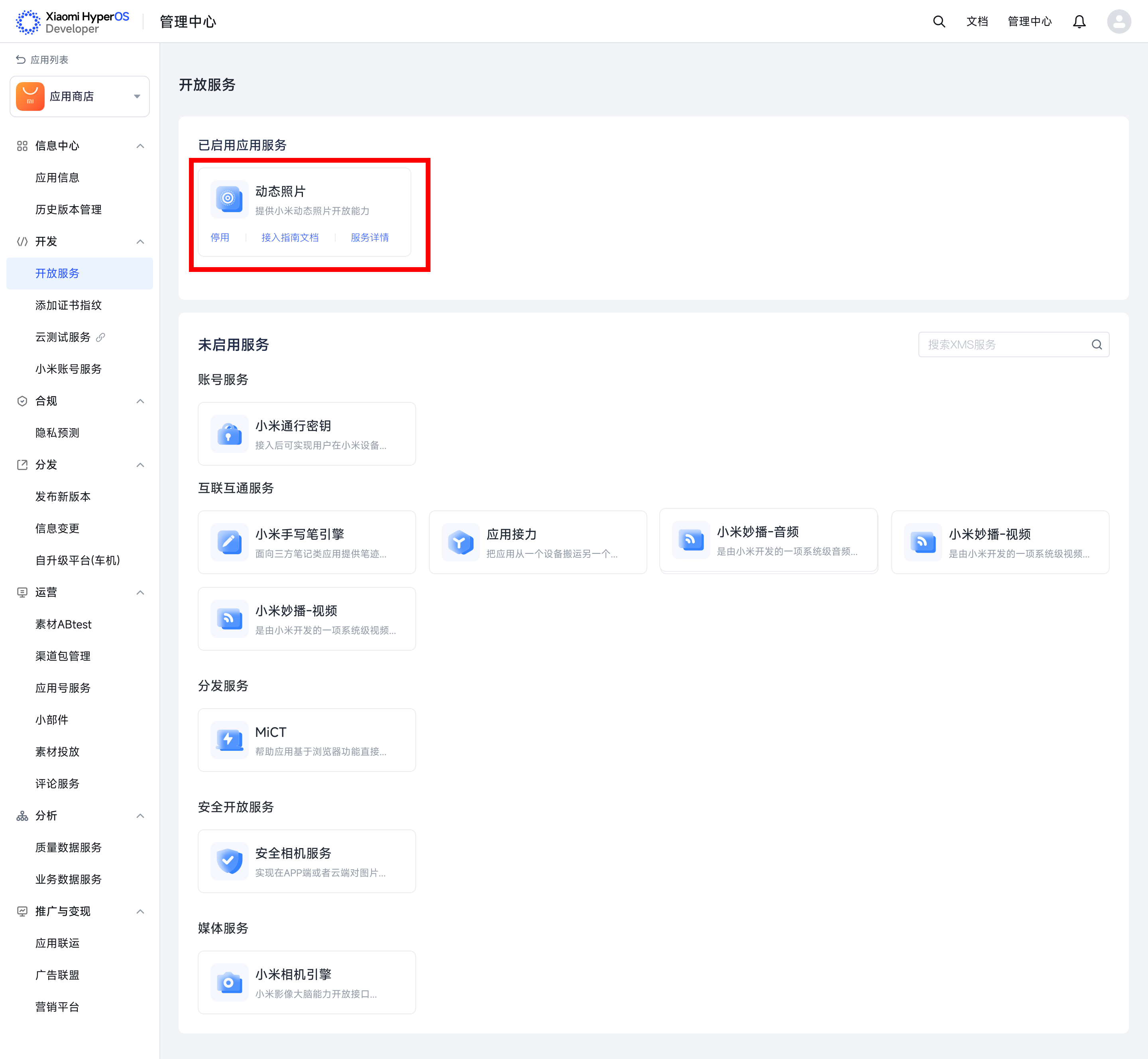 - 访问小米澎湃OS开发者平台,登录开发者账号,访问管理中心,选择想要接入能力的应用