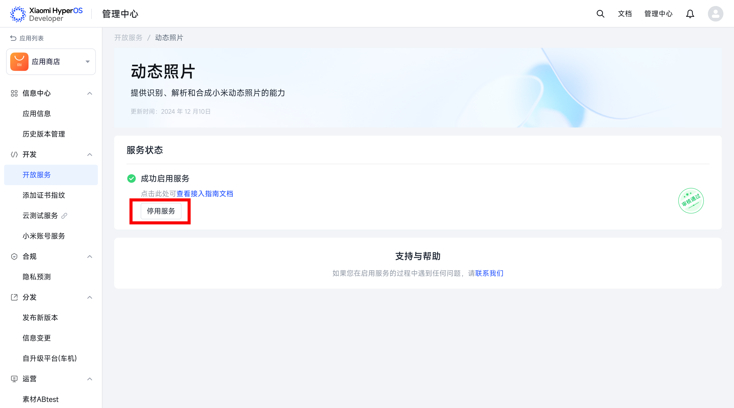 - 在该服务的详情页,点击【停用服务】,停用该应用下该服务