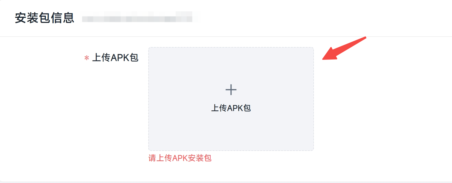 点击”上传APK包“,选择对应的APK安装包进行上传,需确保安装包内的包名与创建应用的包名一致。上传完成后我们将自动解析您安装包内的各项信息,如果您包体较大,请耐心等待解析完成;解析完成后,请检查各项解析字段是否正确。