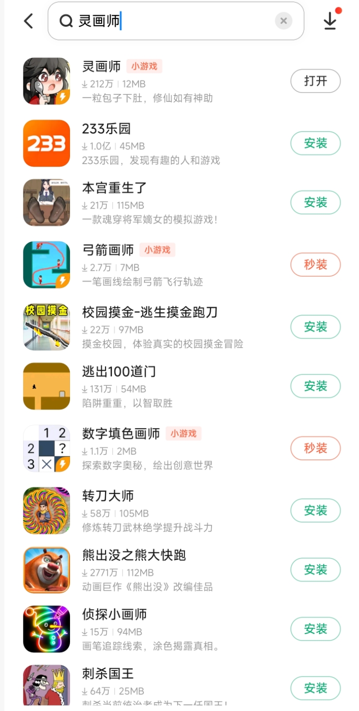 完成环境准备后,在应用商店里任意搜索一个小游戏看能否支持运行