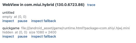 如果使用的是webview环境,可以打开chrome://inspect/#devices,可以在设备列表下找到相关的调试页面,点击inspect进行调试。