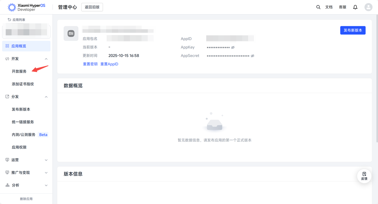 参照应用创建操作指南,完善应用资料并上传包体。 注意:由于国内和海外的开平相互独立,海外应用暂不支持接入国内开平的能力