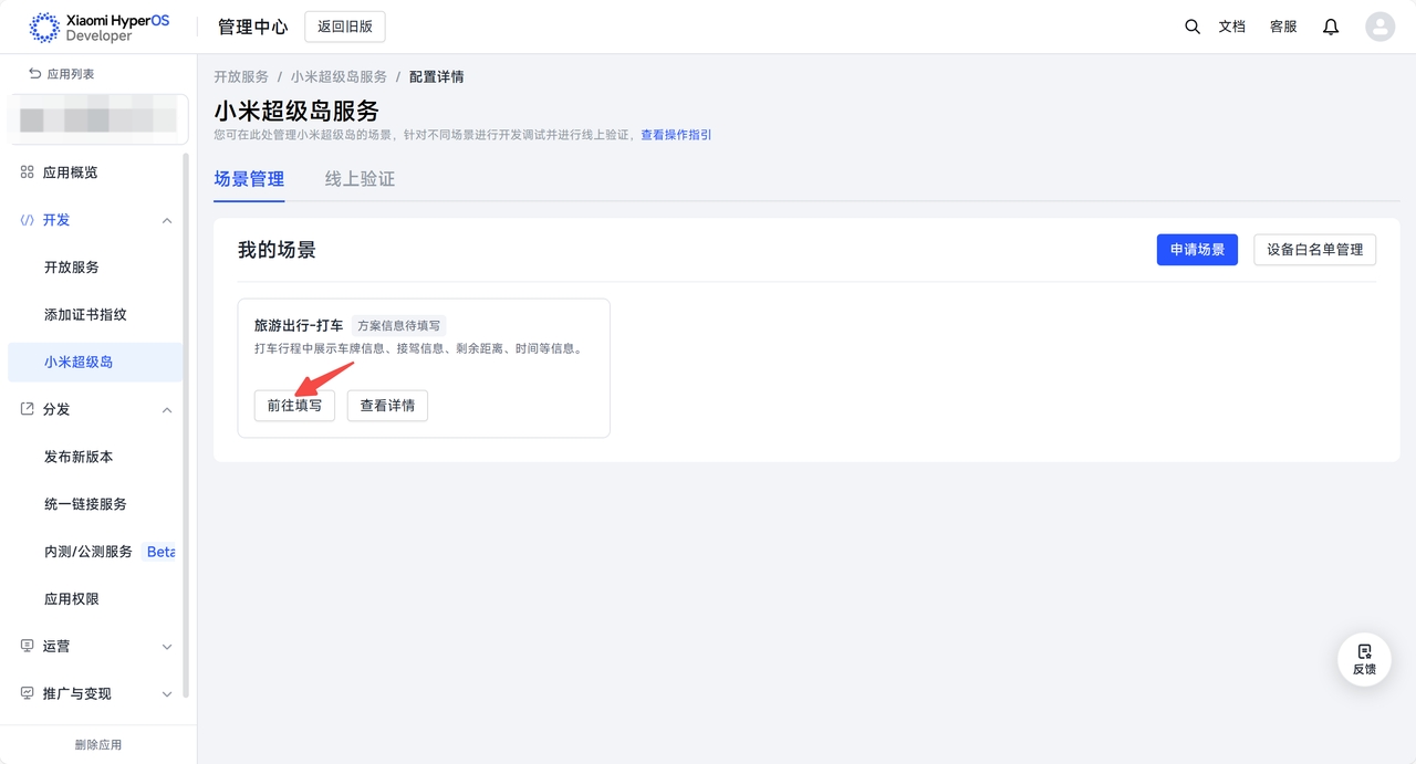 - 从的我的场景进入,选择预审通过的场景,点击【前往填写】
