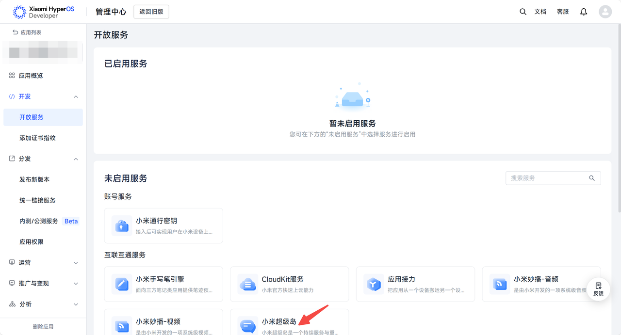 - 进入手机/平板应用选择您需要开通小米超级岛的在架应用