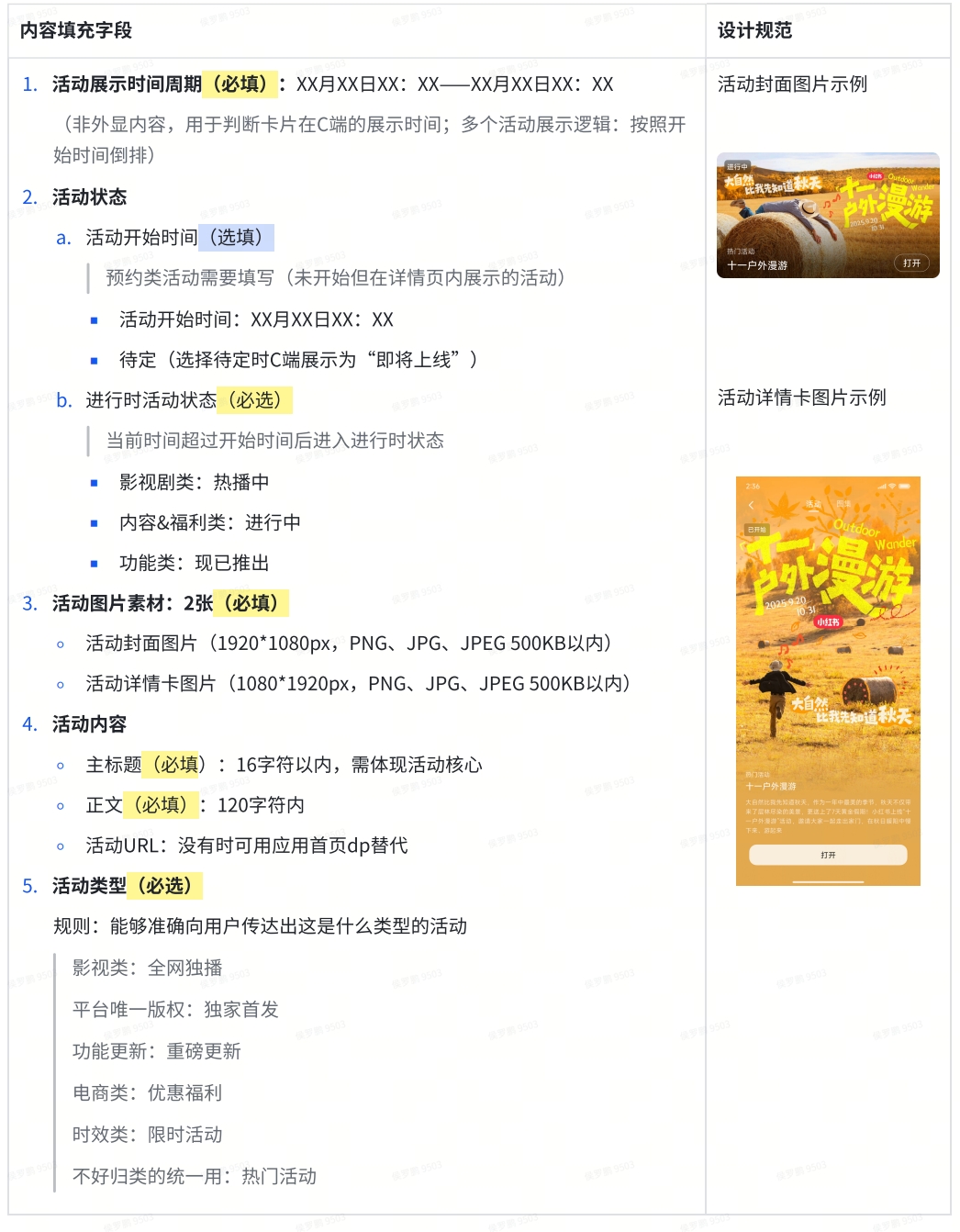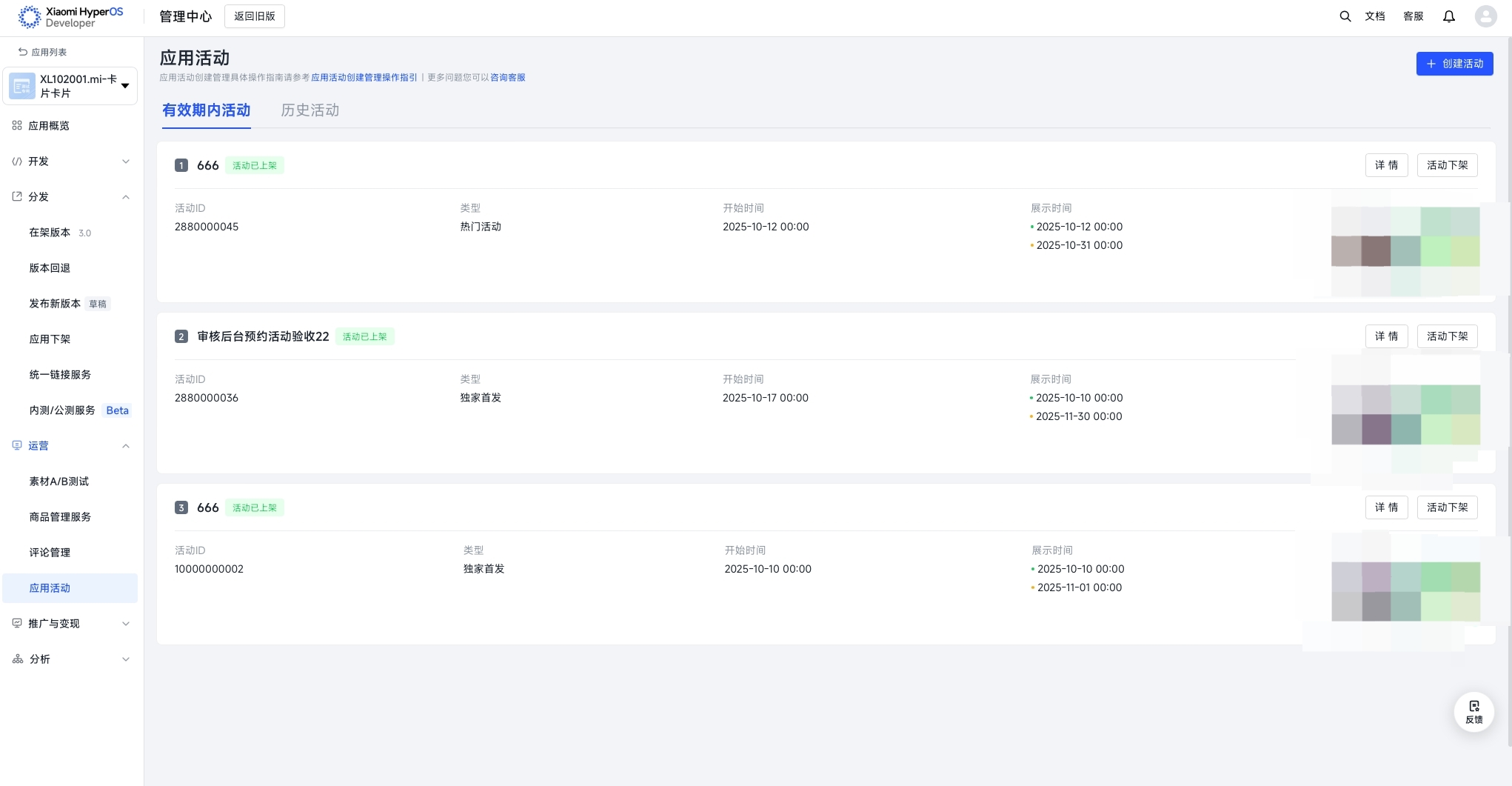 依据开发者提供素材中活动展示时间上线,并根据活动开始时间展示对应活动状态(最多同时五个活动)