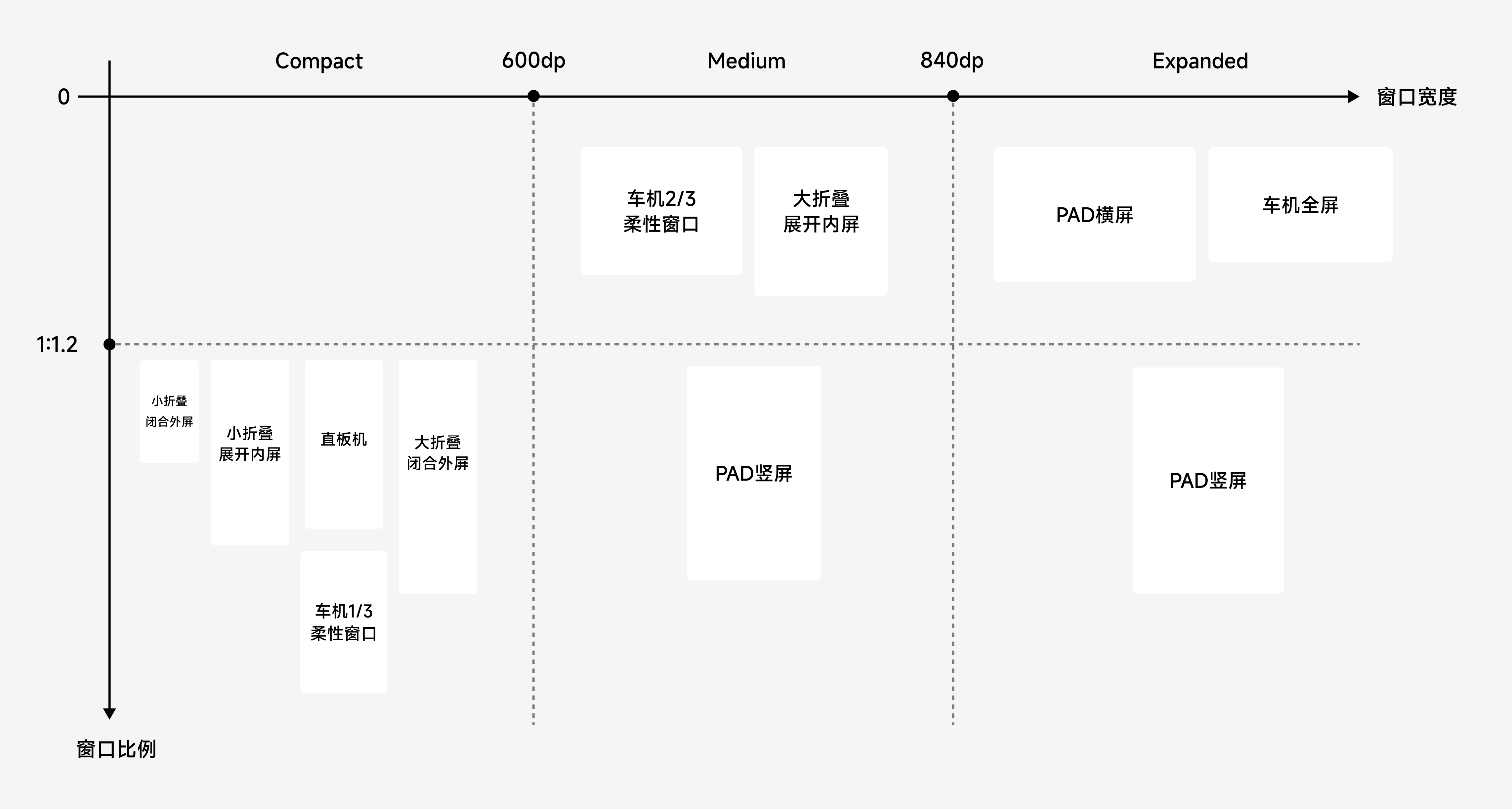 适配便捷原则:为兼容多厂商及海外发行,建议采用与 Material Design 一致的断点值,将屏幕分为小、中、大三种类型。