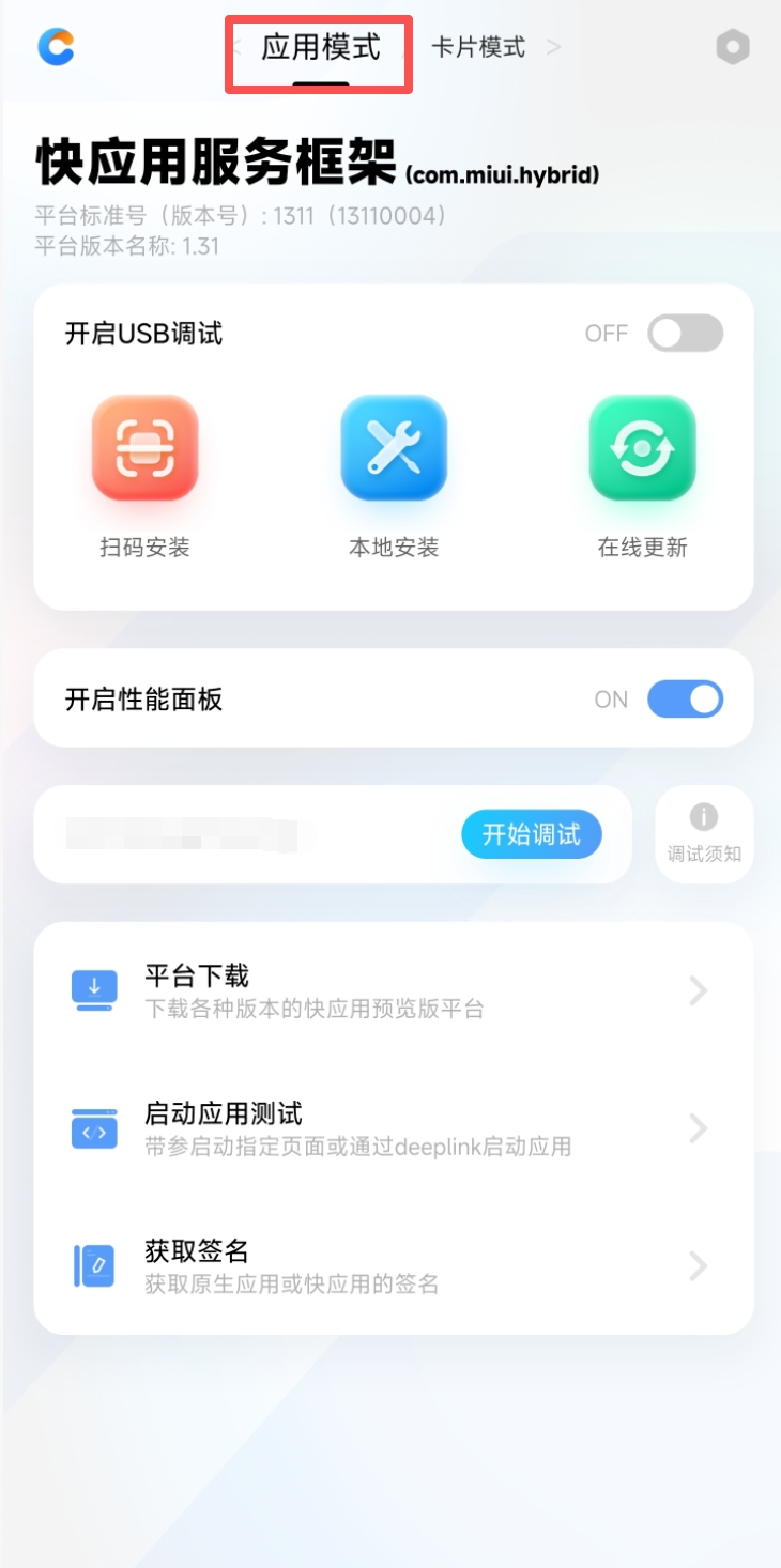 小游戏的运行依赖快应用服务框架,因此需要确保用来进行游戏调试的手机上安装了版本较新版本的快应用服务框架,推荐使用大于等1308版本,框架有三种更新方式: