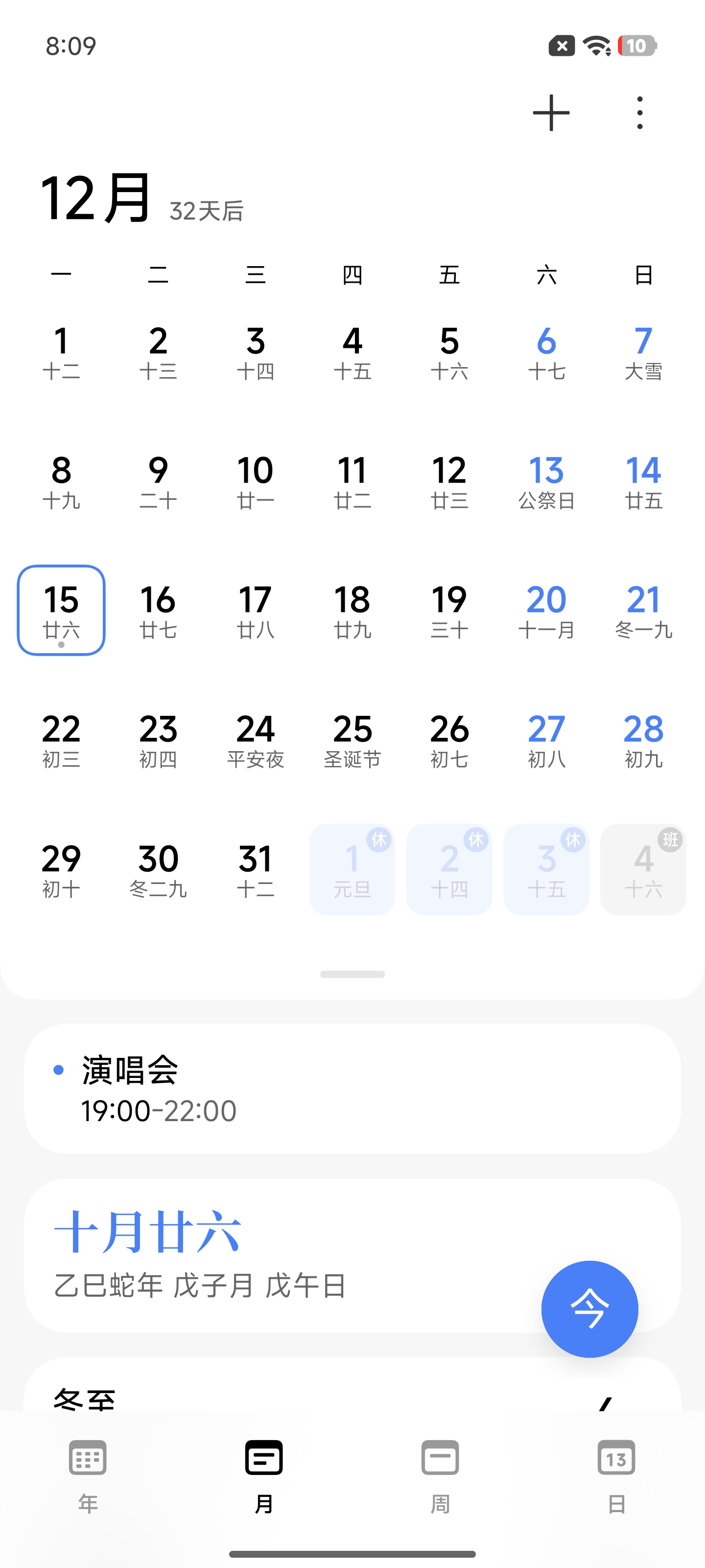 - 每年12 月当天重复 :FREQ=YEARLY;INTERVAL=1;BYMONTH=12。