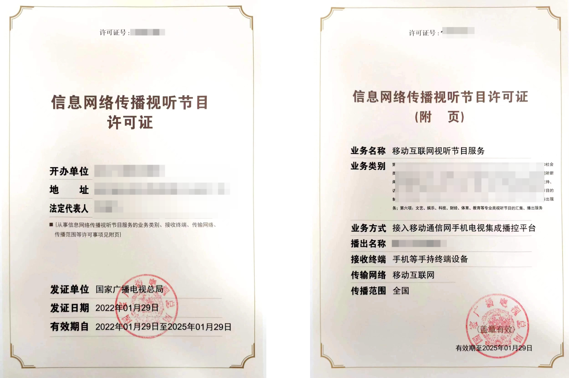 | 影视/短剧/动漫/综艺等 | 《信息网络传播视听节目许可证》 |