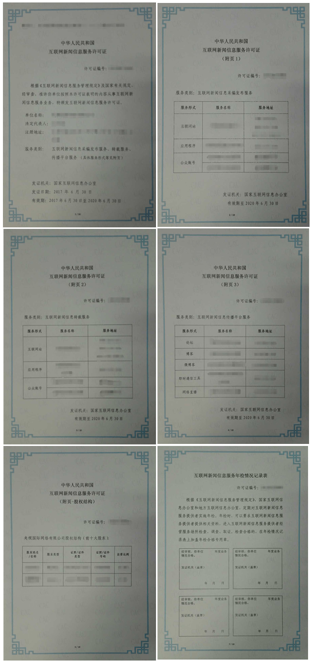 | 互联网新闻发布、新闻转载、时政资讯推送等 | 《互联网新闻信息服务许可证》 |