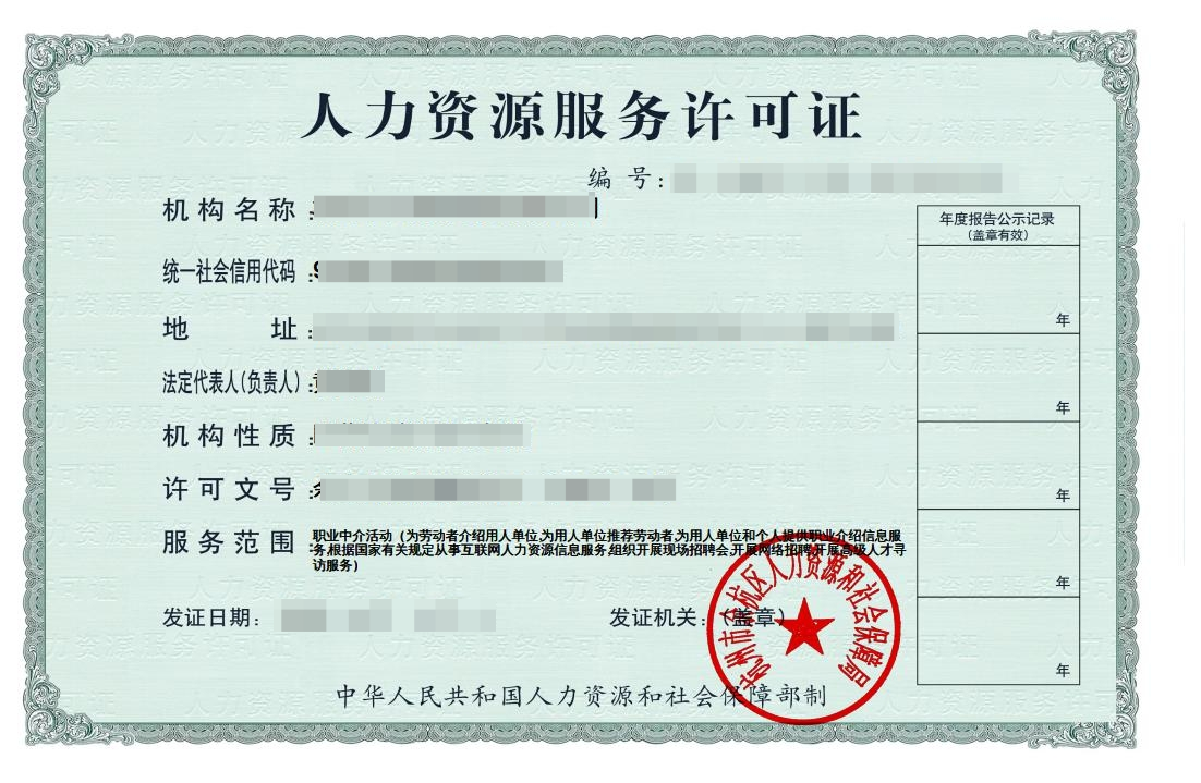 | 招聘/人力资源服务等 | 《人力资源服务许可证》 |