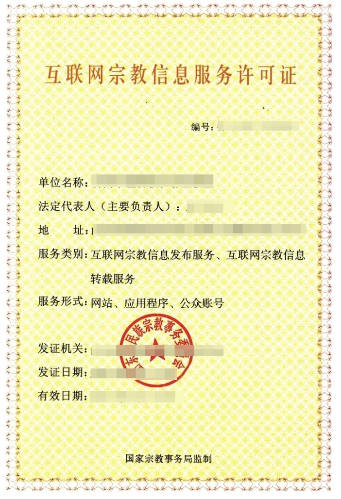 | 宗教基础信息展示、宗教典籍传播、宗教活动发布、宗教知识科普等 | 《互联网宗教信息服务许可证》 |