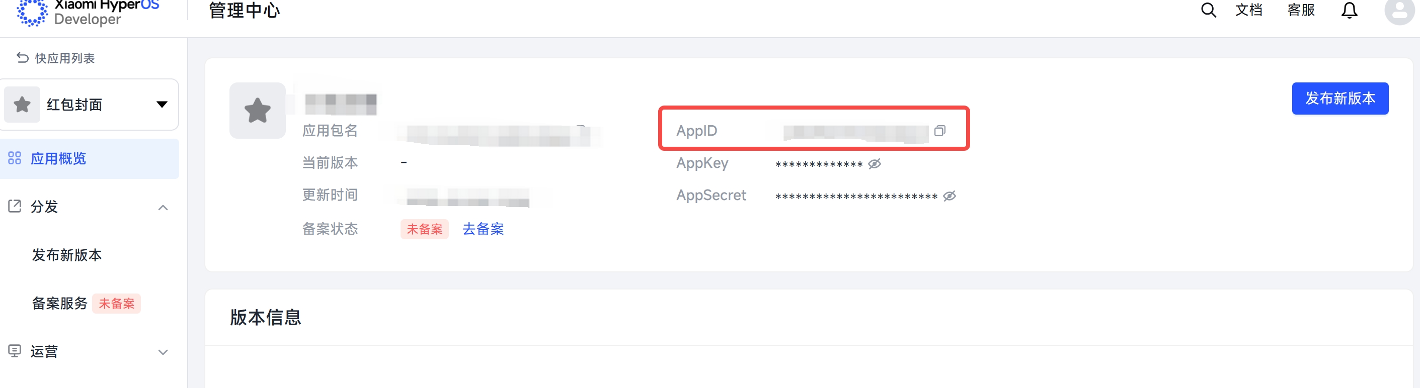 - 创建成功后,在应用详情页获取AppID,此ID将在后续账号服务中作为关键凭证