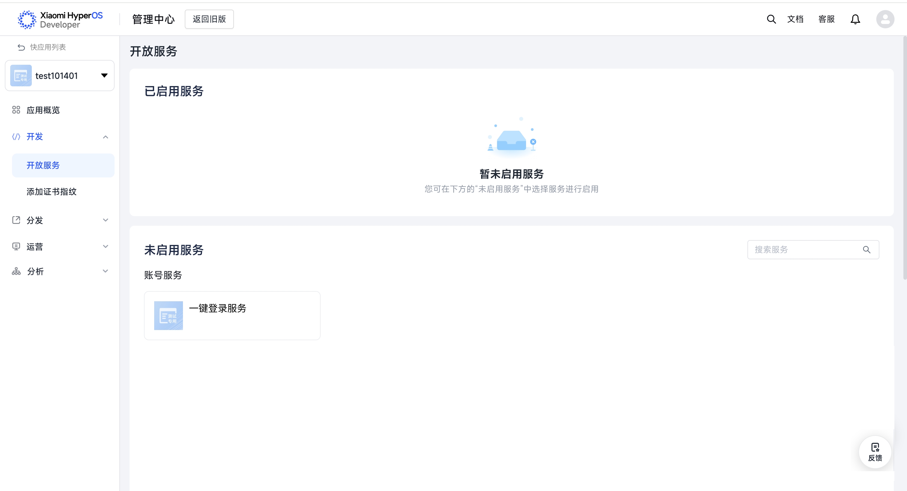 - 在未启用服务模块中找到 「一键登录服务」并点击,即可进入到一键登录服务页面,按页面步骤提示即可启用该服务