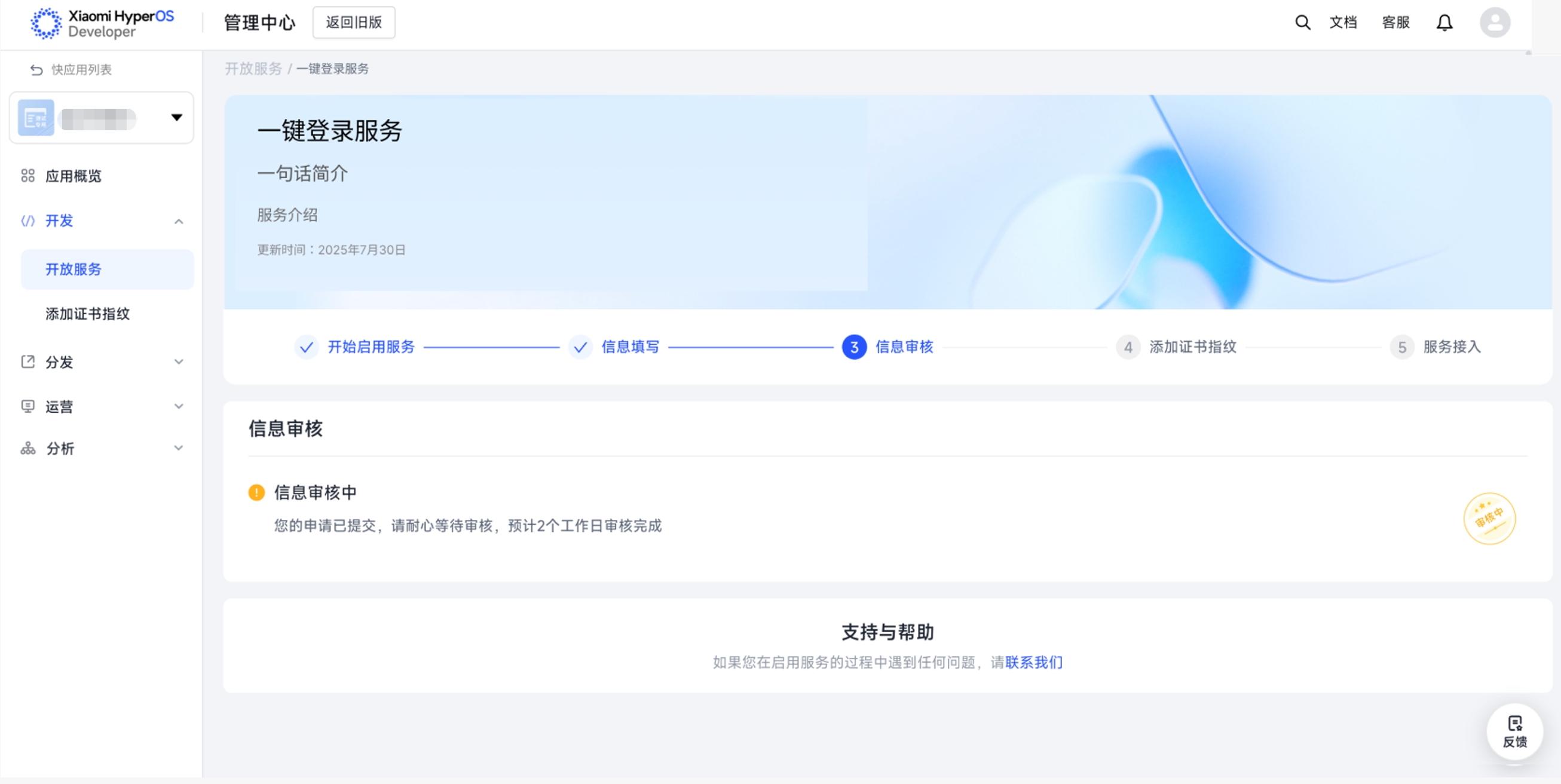 - 在开发者站->管理中心左侧导航栏选择「账号服务」