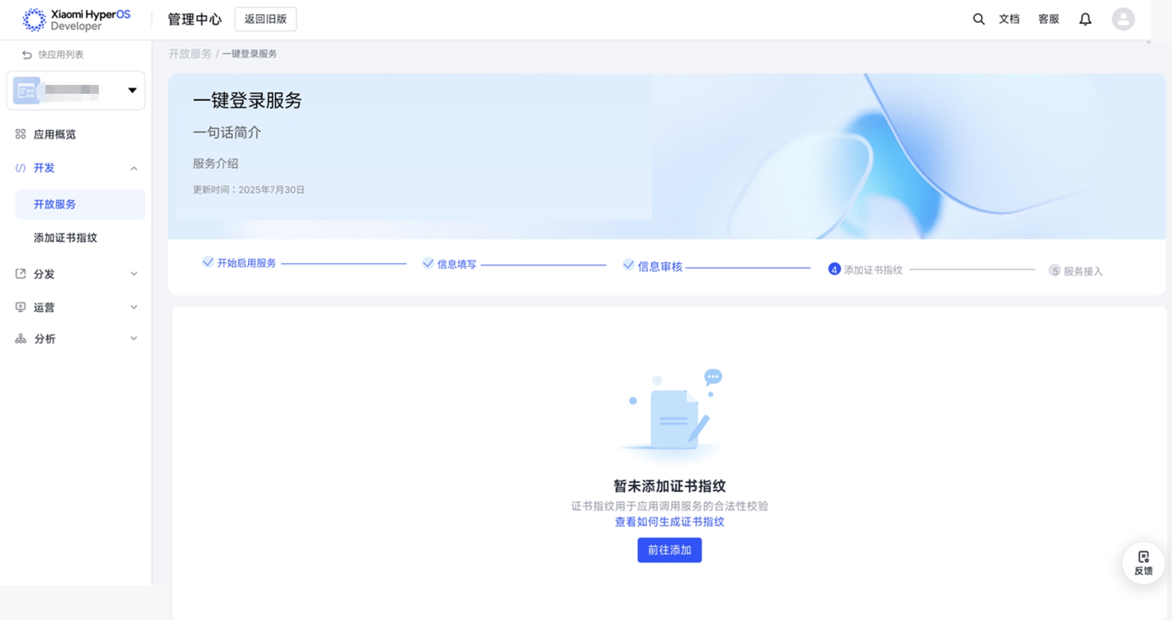 d.添加证书指纹 :审核通过后,进入“添加证书指纹”环节