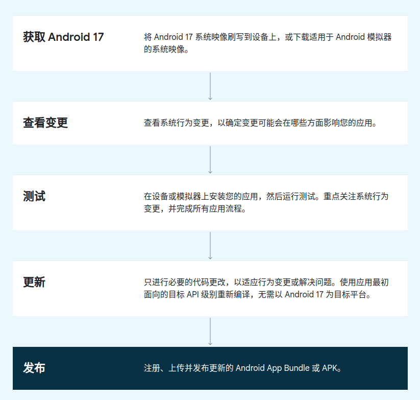 - 确保应用兼容性(在 Android 17 最终发布前)