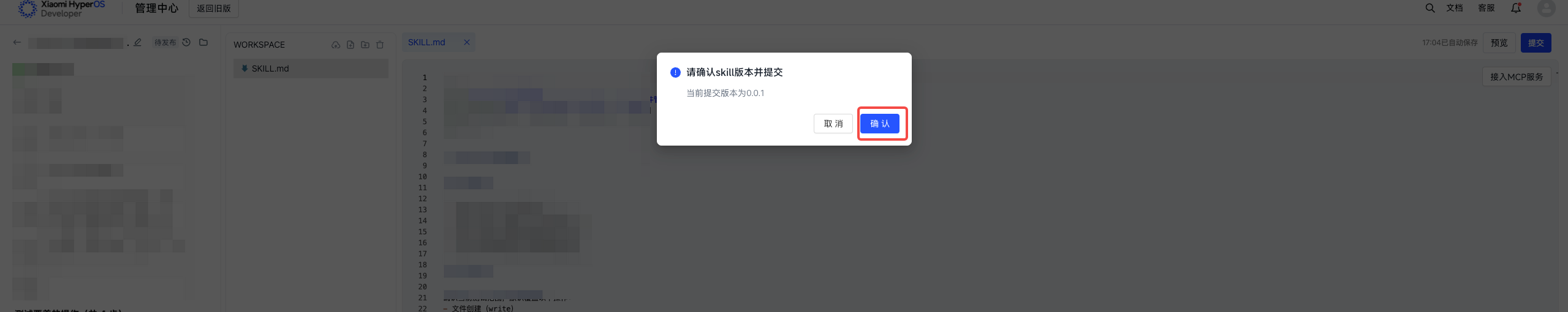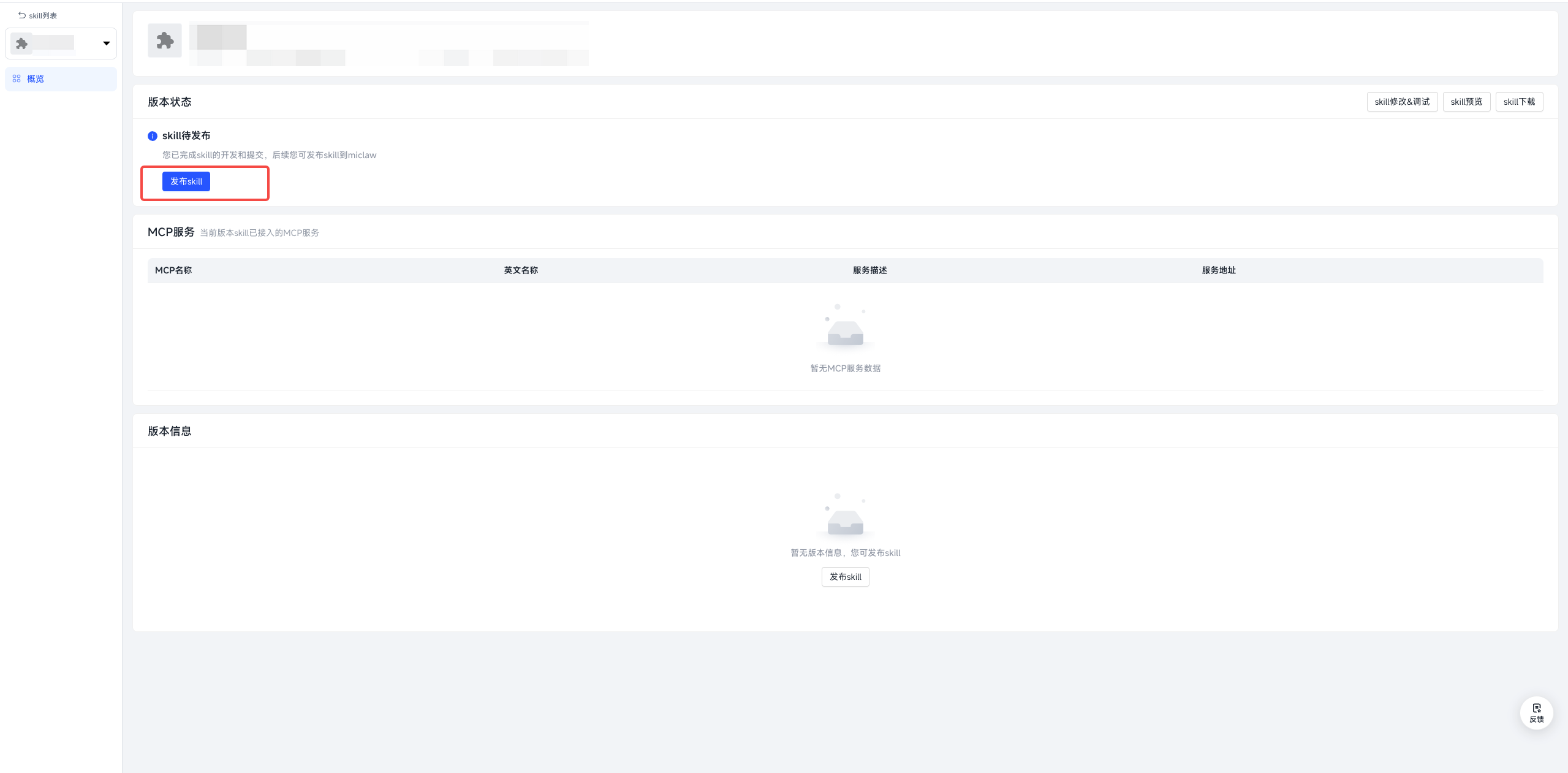 ③您可以在提交Skill文件后通过应用详情页点击“发布Skill”,进入发布阶段