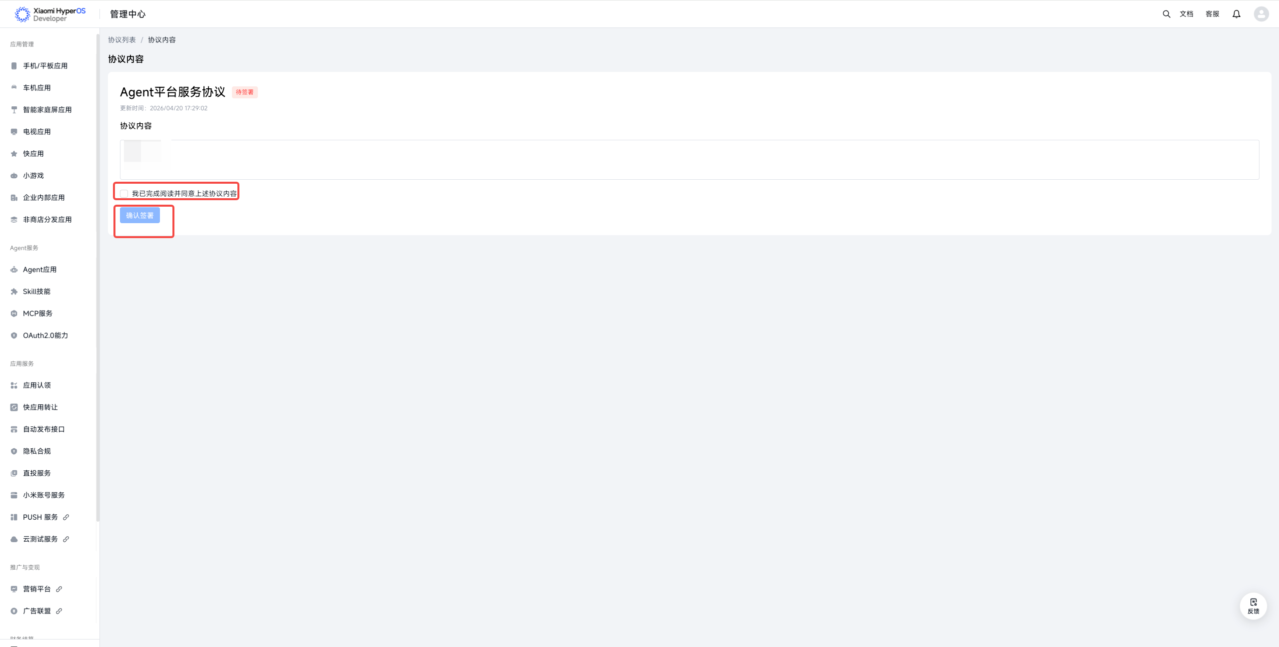 勾选“我已完成阅读并同意上述协议内容”,点击确认签署完成协议签署