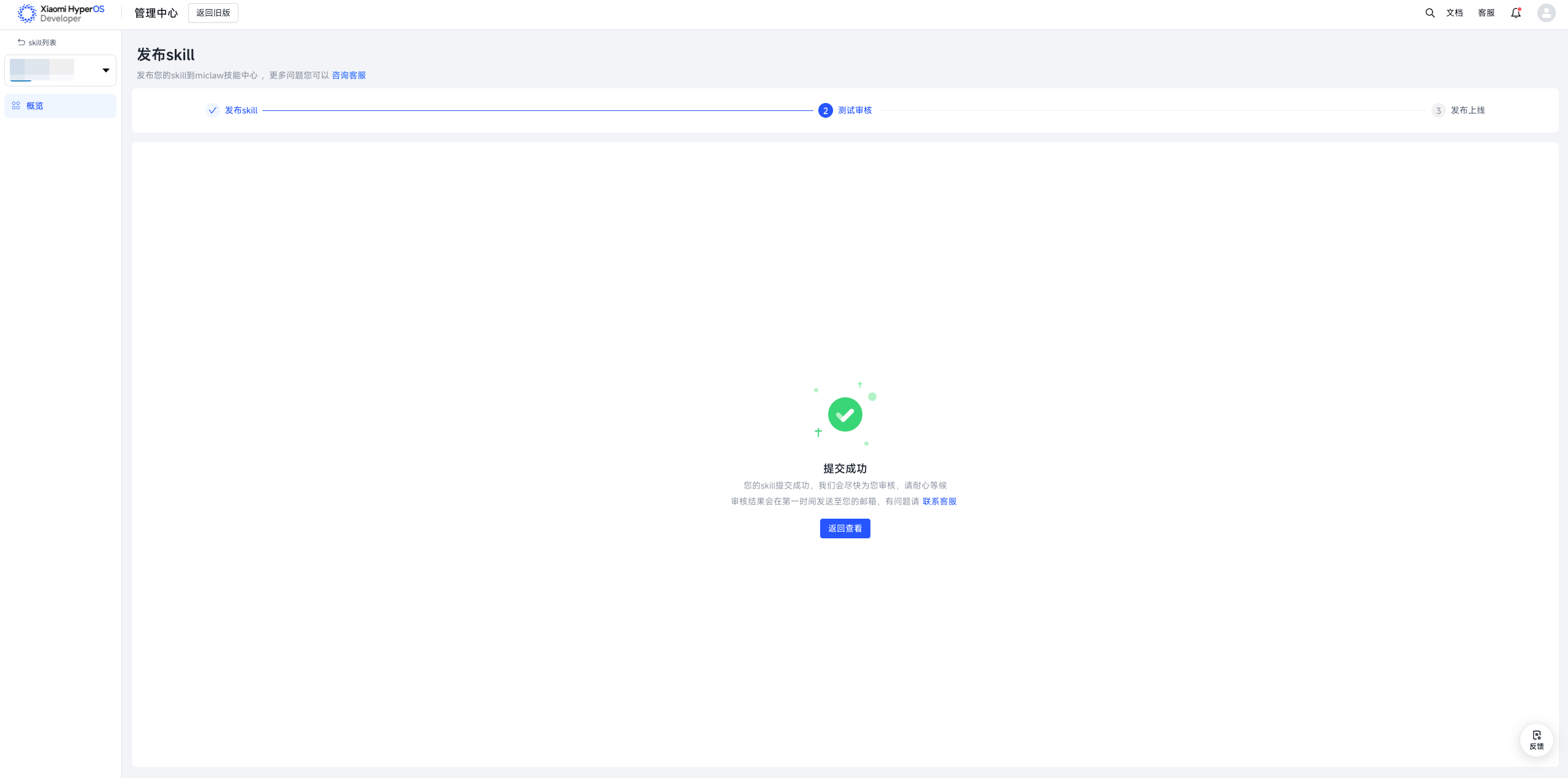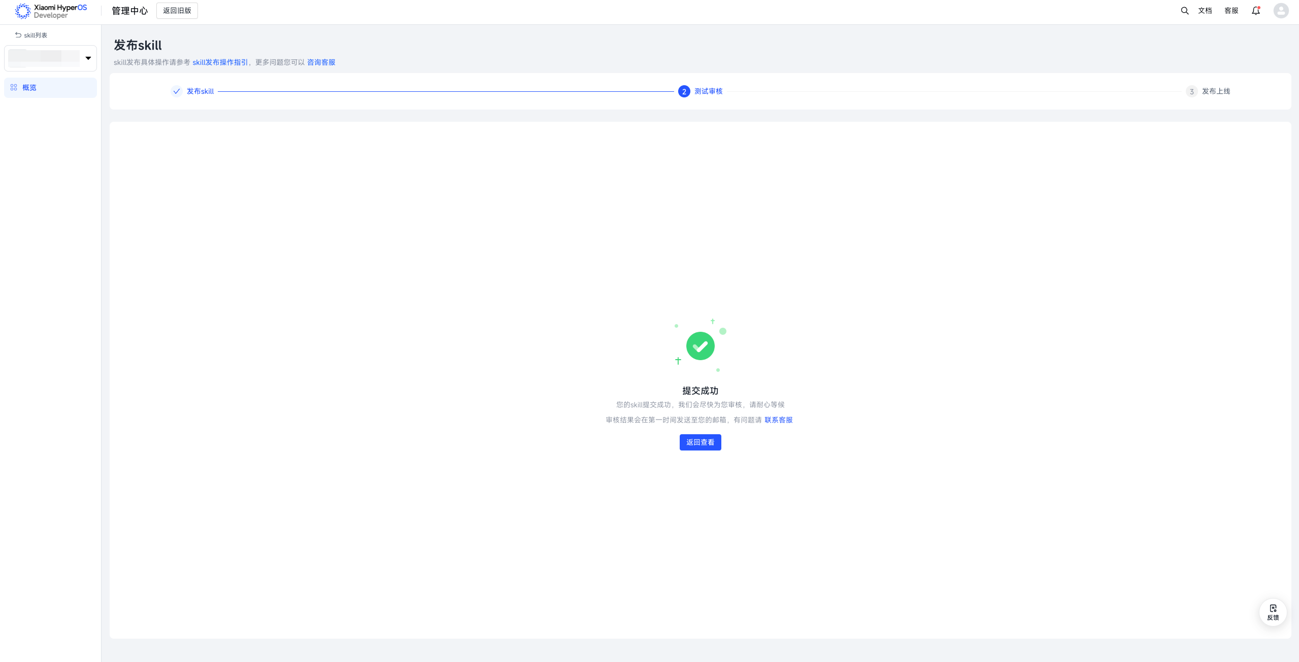 我们将会在1~3个工作日内完成审核,推荐您关注应用商店开发者服务公众号,如有兴趣可了解Skill技能,成为我们的合作伙伴。 以上为小米澎湃OS开发者平台Skill技能发布操作指南,如有任何问题,可联系客服,与我们取得联系。