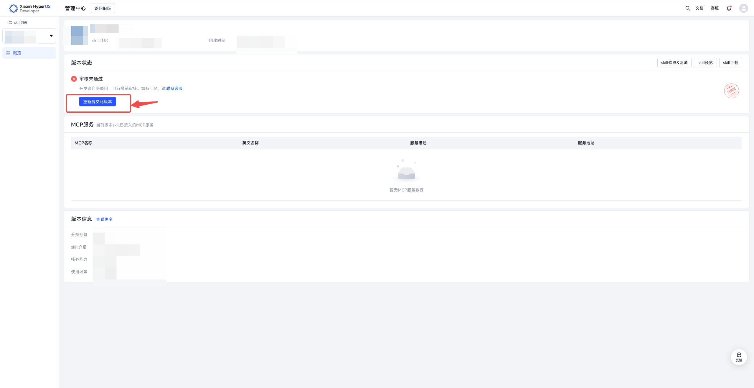 ①点击“重新提交此版本”重新填写Skill基本信息和场景说明